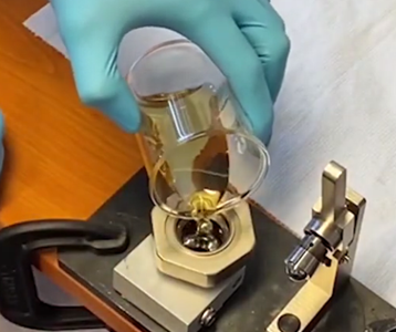 - The first step includes proper cleaning of the balls and ball pot followed by sample preparation. The procedure for oils and greases differs; oil is poured into an empty ball pot with the locked balls whereas grease is packed with a spatula into the ball pot before placing the balls, removing air pockets and locking. (Note - It Is important to use tightening torque of 68 ± 7 Nm to get accurate weld load values).